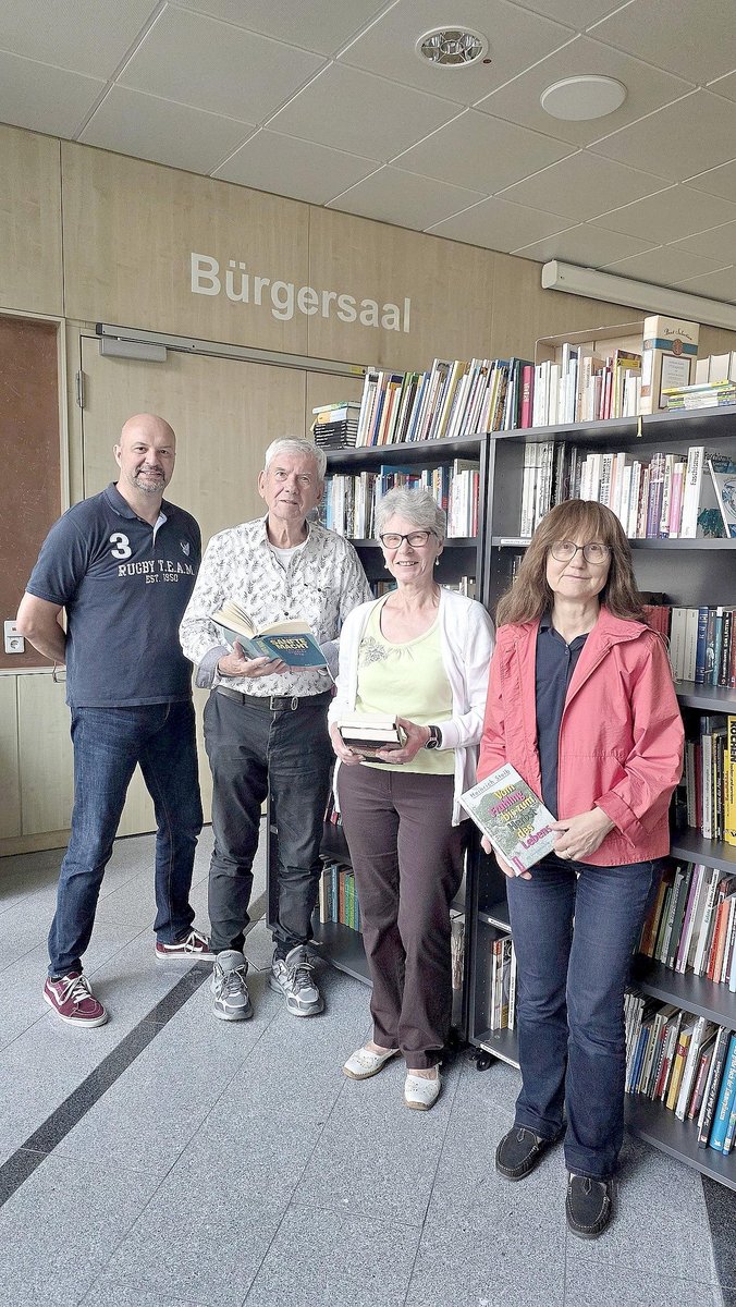 Die vier ehrenamtlich Aktiven Michael Mitzel, Dietrich Dürr, Roswitha Kopf und Elke Böttcher (von links) haben den vorhandenen Buchbestand durchgeschaut, aussortiert und neu sortiert, die Regale geordnet und neu beschriftet - nun können sie ein breites Angebot auf erweiterter Fläche präsentieren.